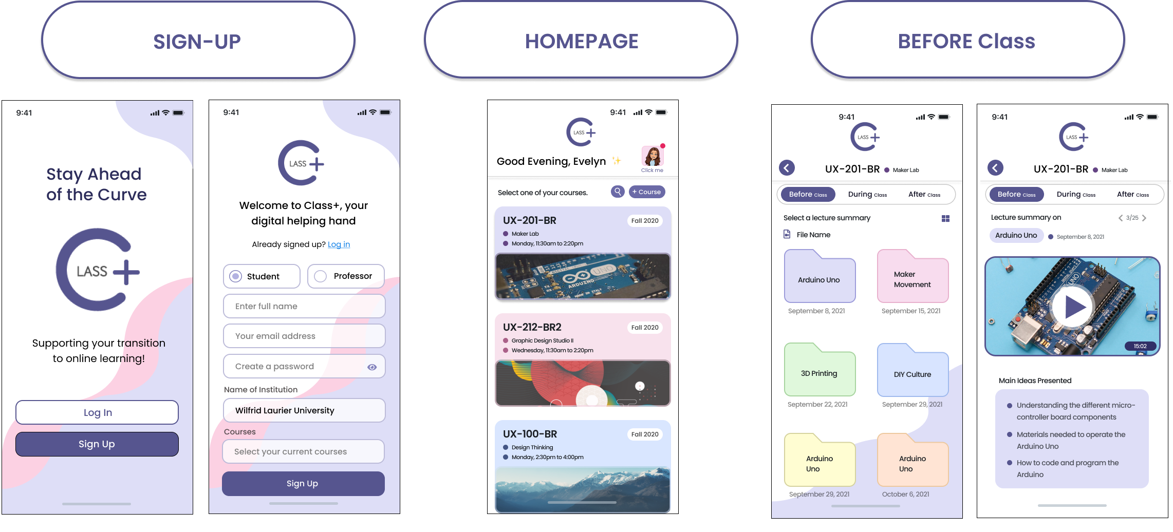 Through this design thinking journey I present to you the final mobile application, Class+: