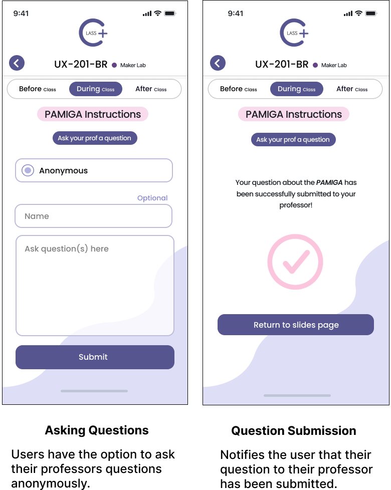 Users want the option to ask questions to professors anonymously. This way, they can ask for clarification in a way that doesn’t bring attention to them.