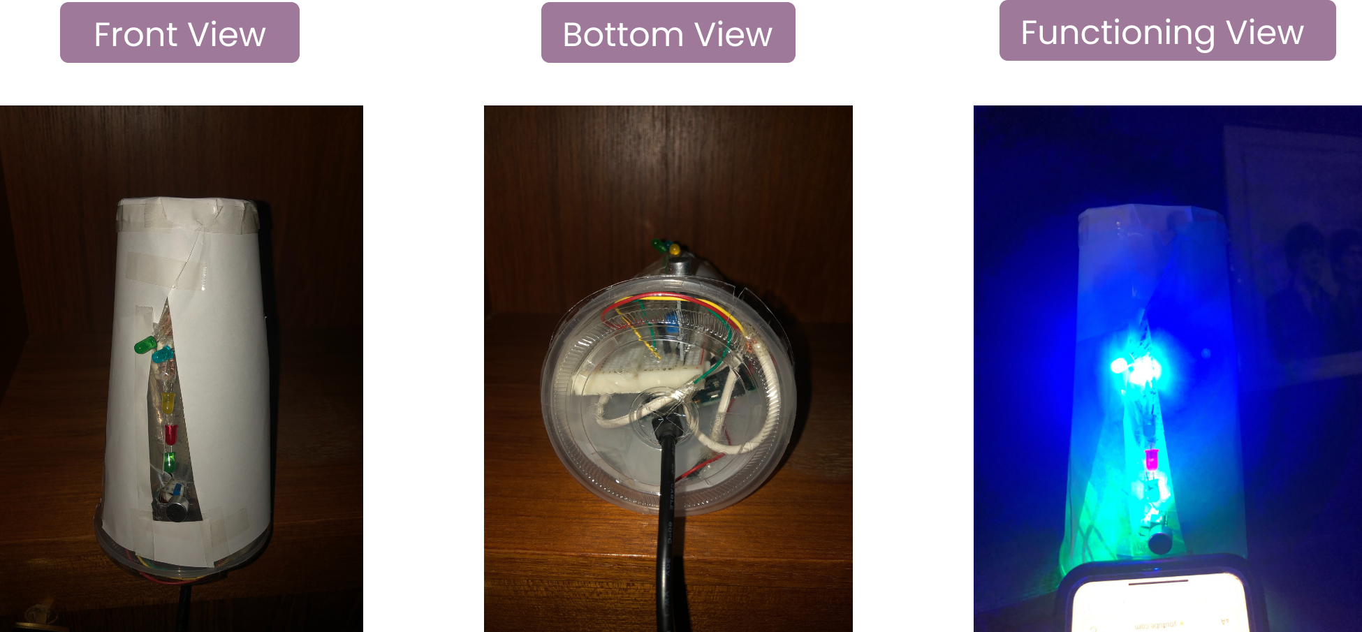LED bulbs that light up to the song's music beat, while it incorporating a light diffusing shade to diffuse its brightness; both working to illuminate our user's experience's visually.